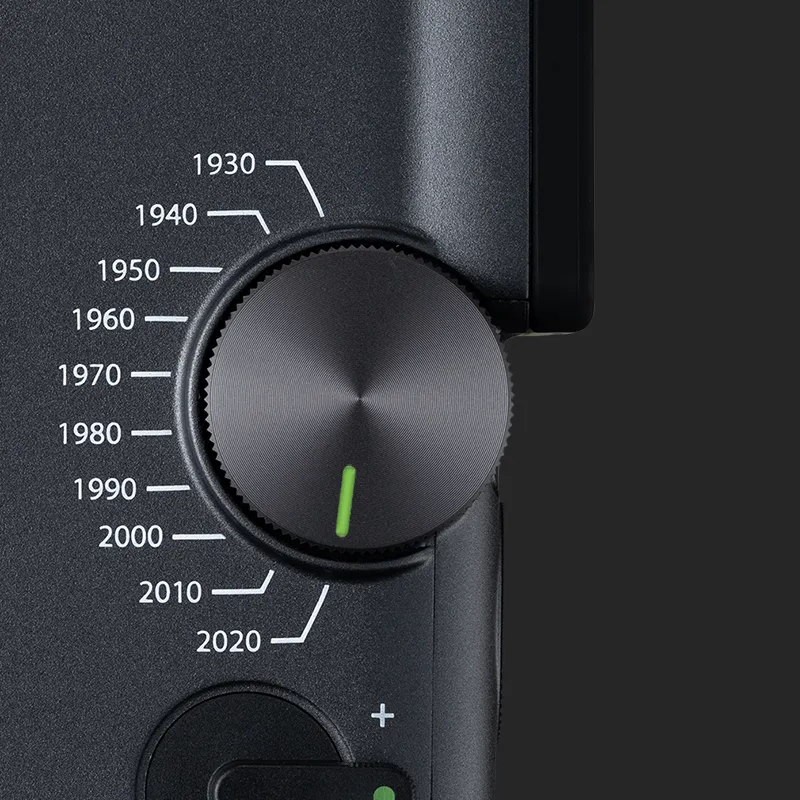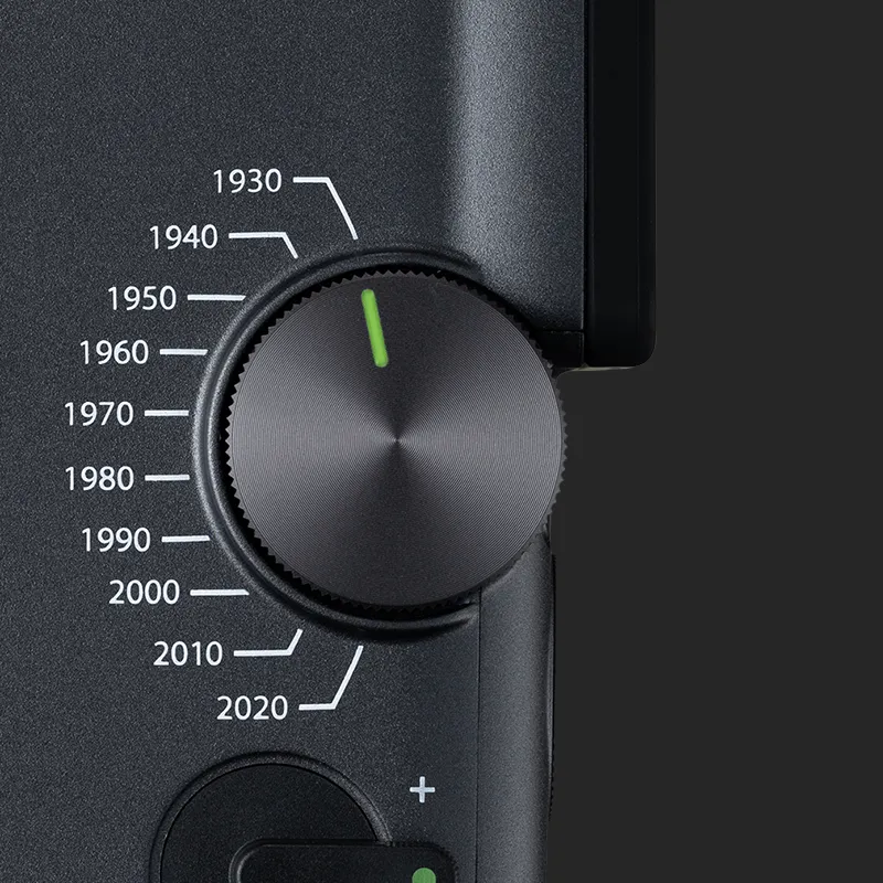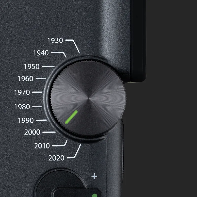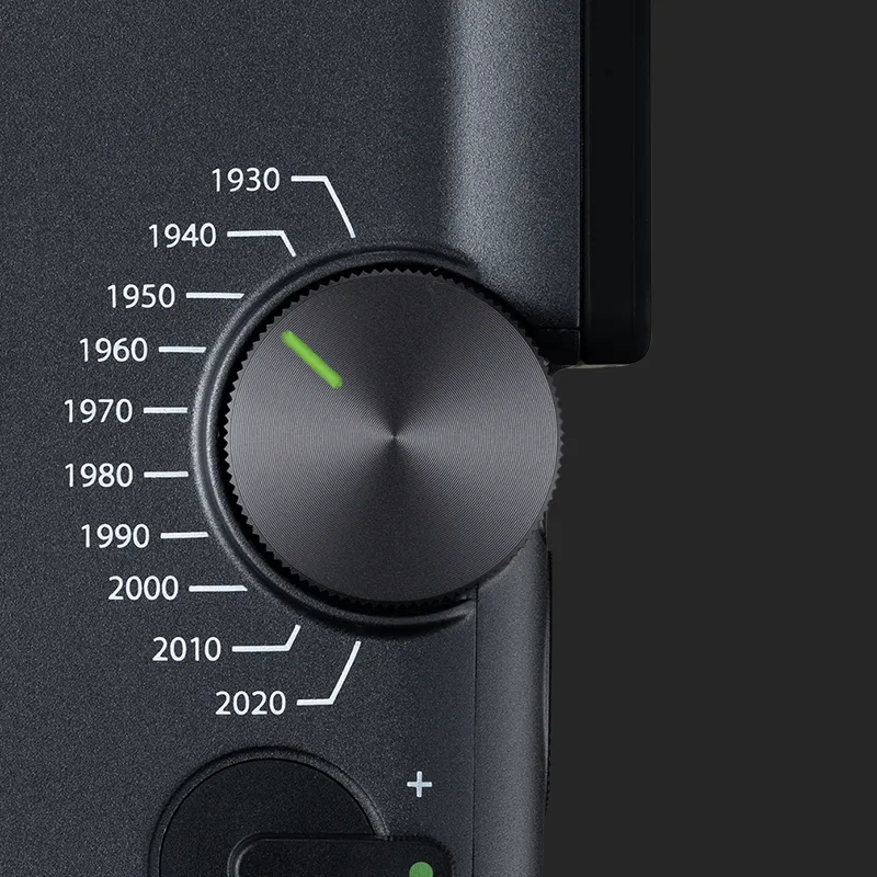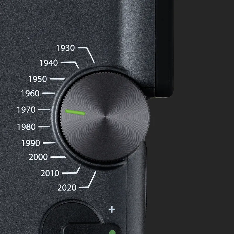 Turn back time with the Eras Dial™ – a handheld time machine that lets you control 10 decades of style. From the grainy charm of the 1930s to the refined edge of the 2020s, each Era brings its own look and sound effects for a timeless, cinematic finish.